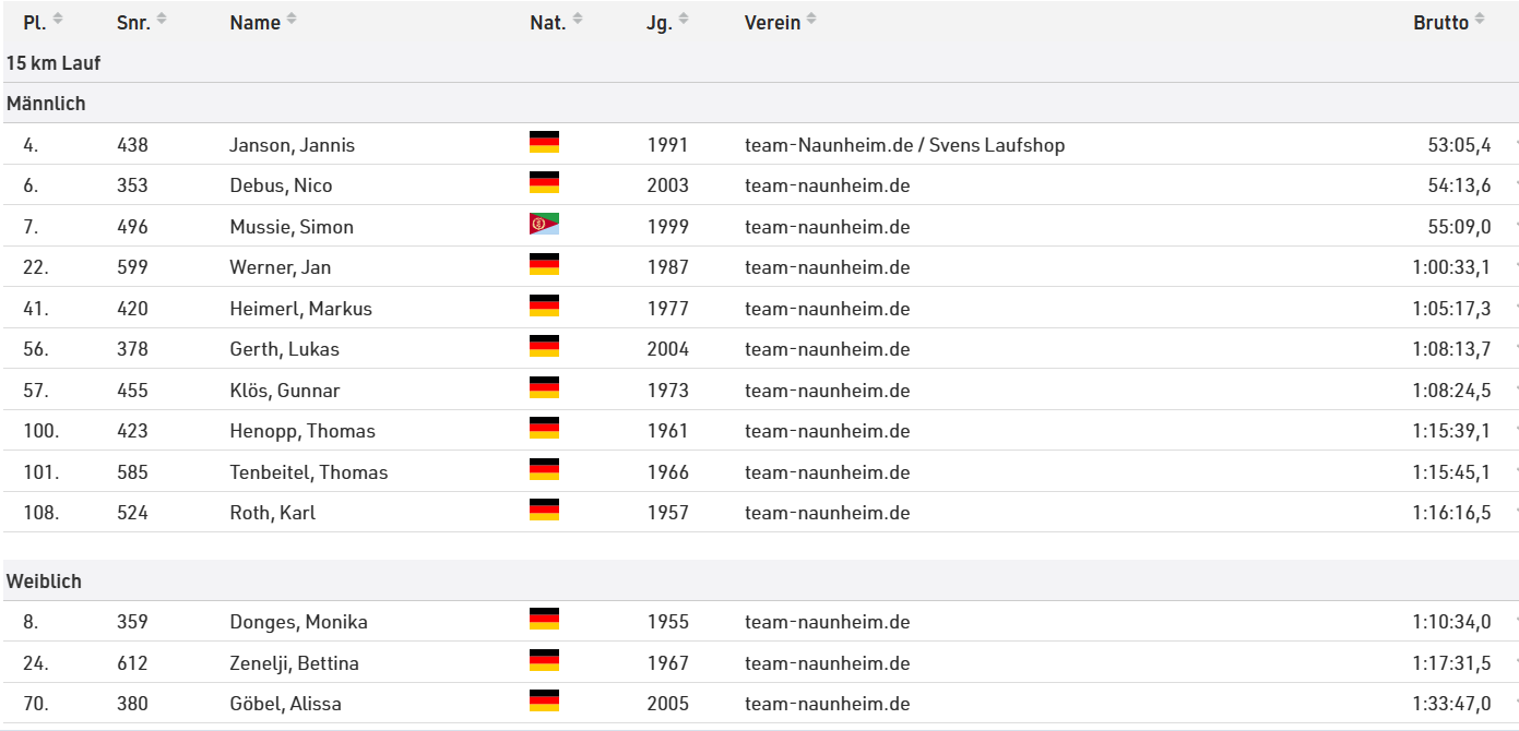Auch von unserem Team waren wieder einige Athletinnen und Athleten am Start. Starke Leistungen zeigten Jannis Janson, der diesmal auf Platz 4 in der Gesamtwertung lief, Nico Debus mit einem sechsten Gesamtplatz und Simon Mussie, der als Gesamt-Siebter ins Ziel kam. Alle drei Drachen kamen in einer mehr als beachtlichen Zeit von unter einer Stunde ins Ziel (Jannis: 53:05, Nico: 54:13, Simon: 55:09). Jan Werner war ebenfalls flott unterwegs und verpasste diese Marke nur knapp (1:00:33). Monika Donges zeigte sich auch wieder von ihrer besten Seite und bewies, dass man auch in der W70 noch richtig gut drauf sein kann. Belohnt wurde sie mit dem achten Gesamtplatz der Frauen und Platz 1 in ihrer Altersklasse (1:10:34).