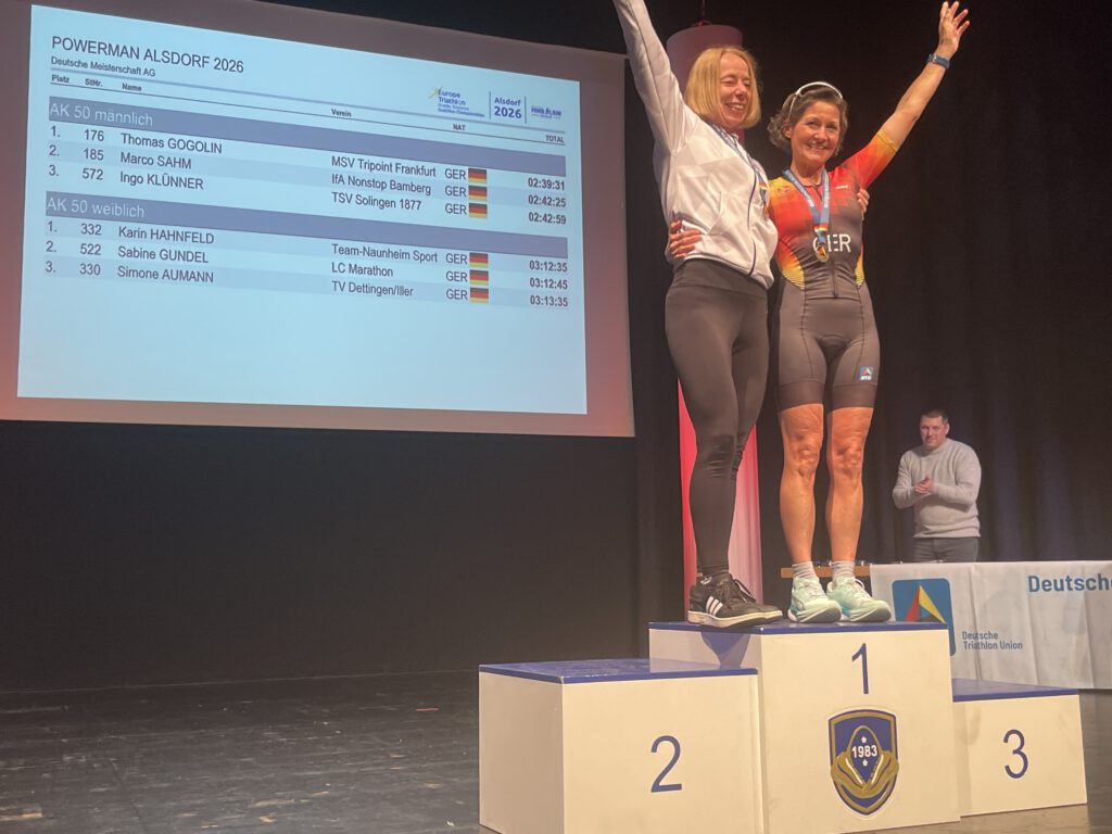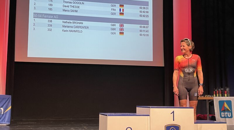 Wir haben eine frisch gekrönte Duathlon-Meisterin: Karin Hahnfeld räumt ab und wird Deutsche Meisterin sowie Dritte bei den Europameisterschaften in der W50!